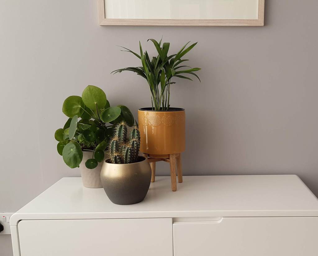 Aside from these great health and wellbeing benefits, houseplants look fantastic too, providing cheap and cheerful décor for your home. The different shades and textures of greenery itself offers great appeal and if you choose a range of striking pots and containers these can also add extra visual interest. We particularly love our recently acquired areca palm and the cute pot and stand. The extra height means that we can have the plant on the floor in the corner of our living room. When it gets bigger, the foliage will also hide the plug points and the cables along the skirting board too!