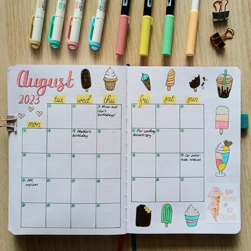 10 thoughts on “Setting up my Bullet Journal for August 2023: ice cream and ice lollies theme