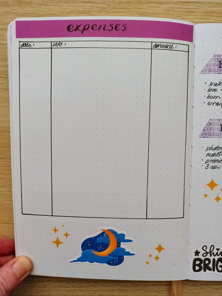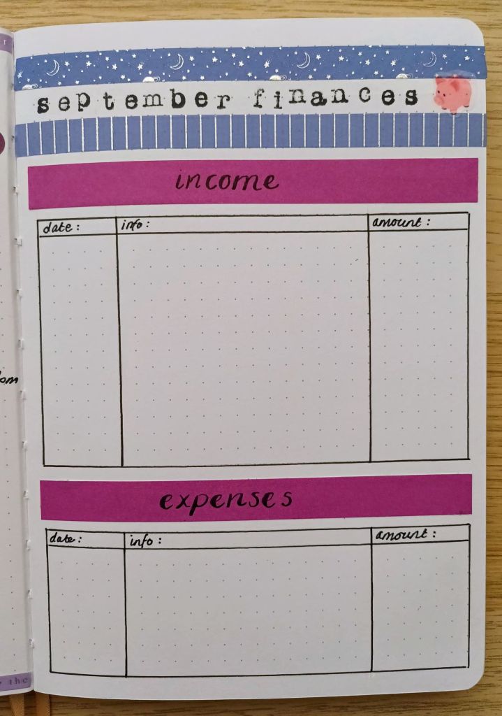 I like to choose quite a pale colour for the lines in my finances log and I picked out this minty green to go with the mid pink colour of the title. I also used one of my stickers leftover from the calendar and added a few petals to look like they’d fallen from the bouquet.