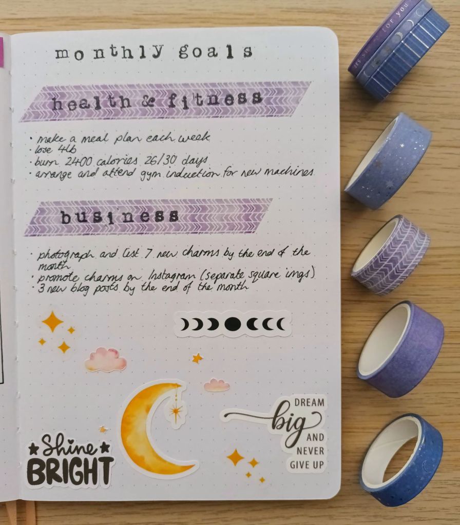 A goals page has become a regular feature in my monthly bullet journal pages. I look at my vision board for the year and also my bucket list to help me choose a small number of goals to work towards. When I first started adding goals, I would come up with around eight in total, but I soon discovered that this was too much and for the last few months, I chosen five which I feel is a lot more attainable, even if I’m busy with work and fitness classes.