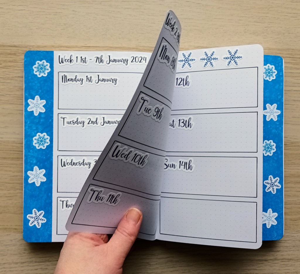 I’ve done the same set up for each of my weeklies and used flower decor throughout. This is for the first week which I’ve already started to fill in. I’ve been busy making tiny icon stickers to use to represent different activities and I’m continuing to add to my collection. This will make my planning process quicker and more visual.