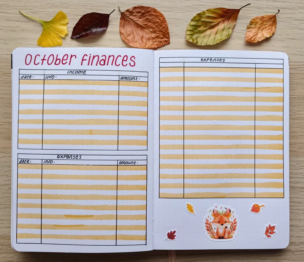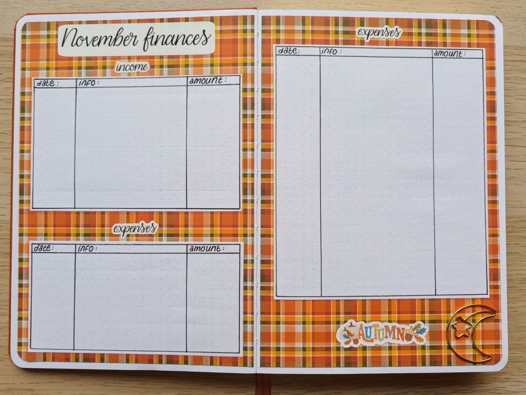 I kept these pages really simple because I wanted to spend time on other things. Obviously, I’m not sharing information about my income and expenses.