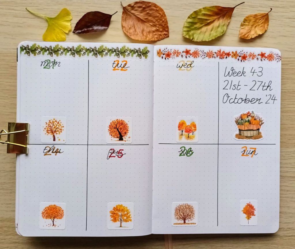 Following on from my winter foliage theme for December, I continued taking inspiration from nature and chose winter trees as the focus for my January spreads. With being ill at the beginning of the month, I simply drew up the basics of my layouts and added the decoration later when I was feeling much better.