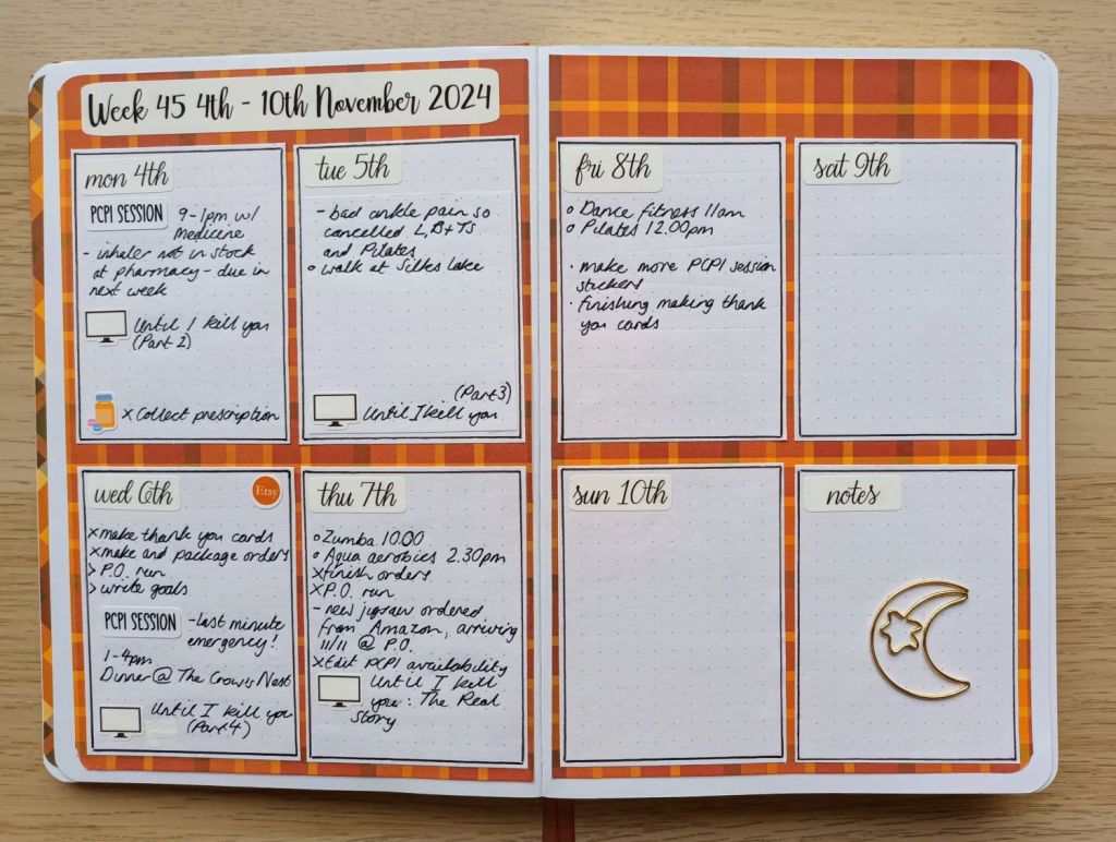 The first week of my weekly plans is a bit sparse and I couldn’t resist making some feeling like poo stickers to show why the first half of the week is pretty much blank. Some of my dailies are more busy than others and sometimes I run out of room. I also usually do a rolling weekly for general, none day specific tasks.