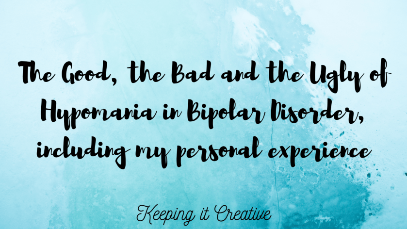 These are a few of the difficulties I face which could be described as ‘bad’, but what about the ugly? By ugly, I don’t of course, mean that I turn into a grotesque monster who people can’t stand to look at. I’m really referring to the effects that hypomania can have on character, traits or behaviour. For example, I can have a short temper and might raise my voice to my husband in frustration for being too slow to answer a question, forgetting something, not getting ready to go out fast enough or for asking me to repeat something I’ve said (when talking at speed and not stopping). I might also make comments about someone that I would consider to be nasty at any other time. Or my inflated ego might make me believe that I’m superior to others and that I could do a better job than them. Although I may or may not say things out loud, I don’t want to be someone who voices or thinks horrible things.