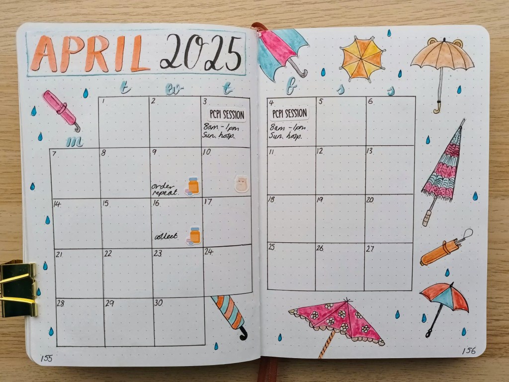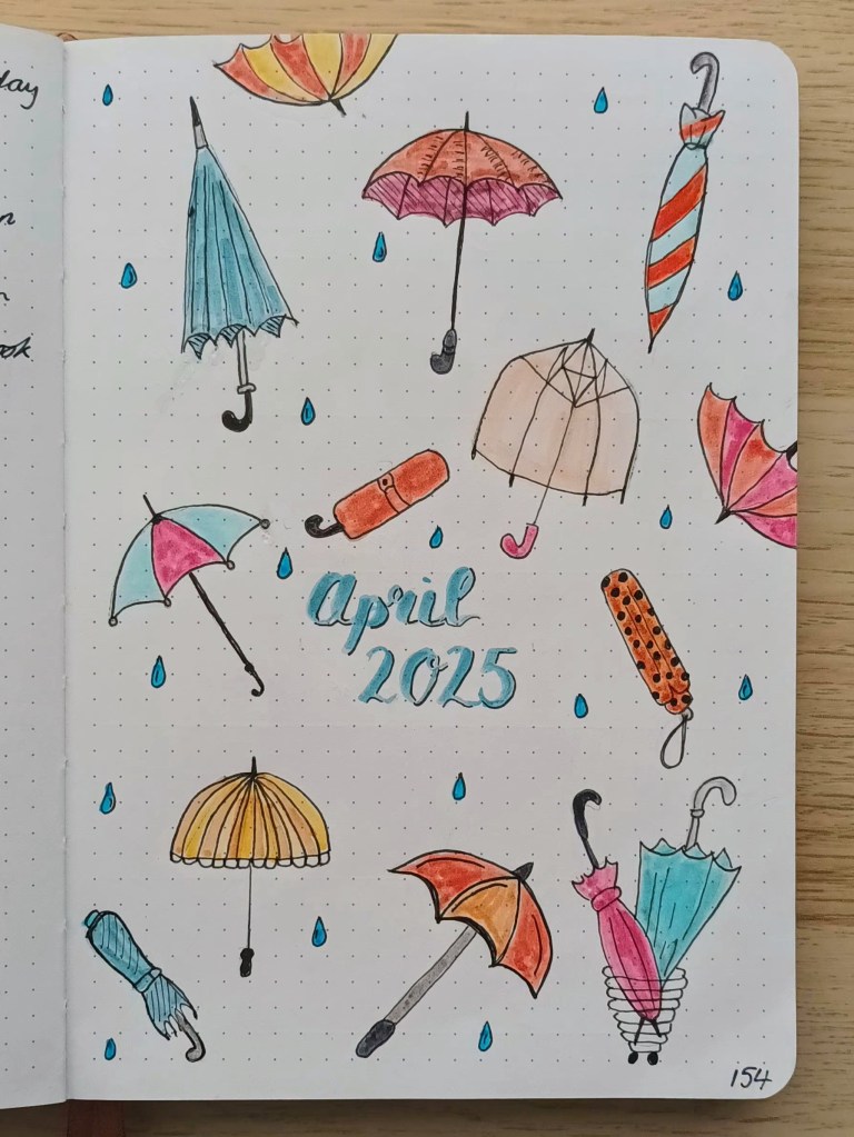 Setting up my Bullet Journal for April 2025: April showers, umbrella theme