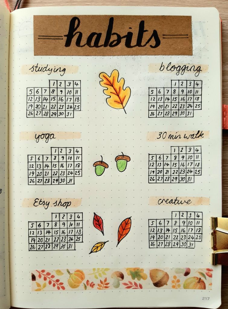 Welcome to another blog post where I share my bullet journal set up for the month. For October, I went for an Autumn vibes theme with lots of stickers featuring autumnal leaves, fungi, hot drinks, squashes, woodland animals and colourful trees. I hope you like my pages which took me a good while to complete!